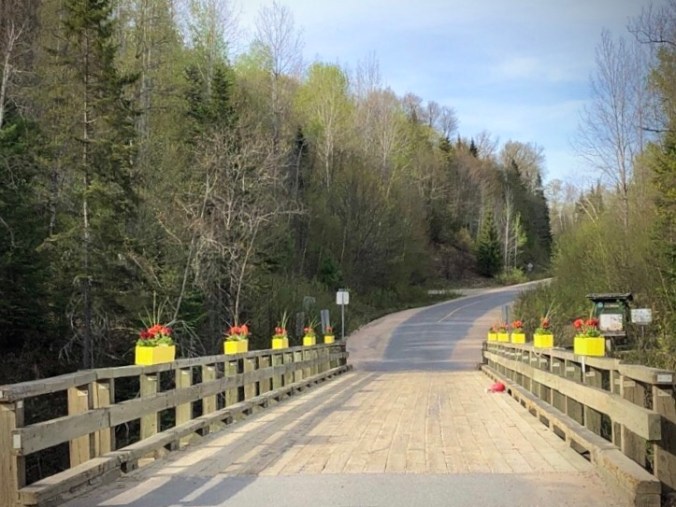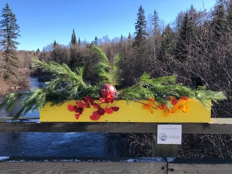 Pendant la fin de semaine du 31 octobre, quelques membres* du C.A. de l’Association se sont réunis pour décorer le pont de la rivière…Cette année nous tentons l’expérience de laisser les bacs à fleurs en place. Nous avons aussi installés des lumières DEL qui s’illuminent le soir et ajoute une douce ambiance autour du pont et de la rivière.