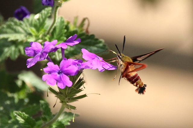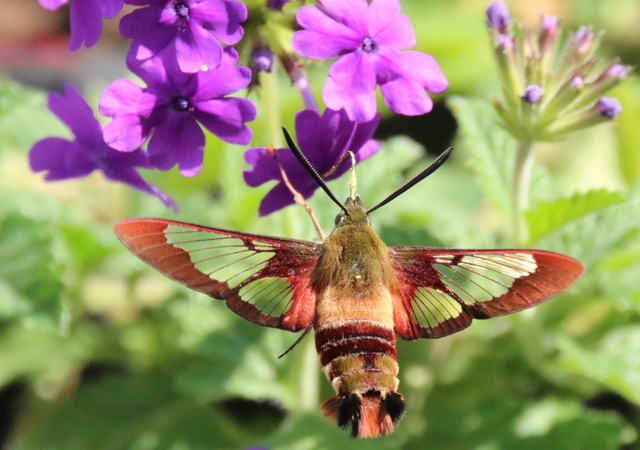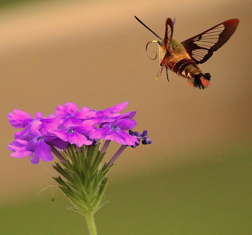 Un Sphinx colibri, de la famille des papillons. Il vole comme un colibri, il mesure environ 1 po et il a les ailes transparentes.